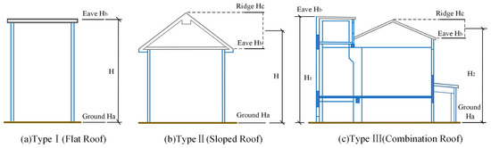 According to this code, buildings are classified into flat, sloped, and multi-type combined roofs, as illustrated in