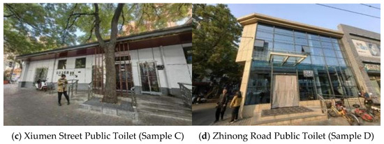 - Dong, B.K.; Zheng, C.R.Y.; Tian, Y.Z.; Yang, C.D. Satisfaction degree and influencing factors of urban public toilet renovation from the perspective of human settlement environment: A case study of Qingcheng Yi Station in Hohhot City. Urban Probl. 2023, 4, 96–103. [Google Scholar] [CrossRef]