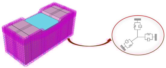 For an FEA model, a limited space is used to replace the infinite space based on artificial boundary element simulation to improve the calculation effect. However, seismic wave behavior often results in reflection phenomena on the assumption boundaries, which makes it difficult to accurately simulate the propagation of seismic waves to infinity. The viscoelastic artificial boundary is implemented by placing springs and dampers in three directions at the boundary nodes (Figure 6). The viscoelastic artificial boundary can absorb seismic reflected waves and simulate the elastic recovery capability of the foundation. The stiffness and damping coefficients of the springs are as follows []: