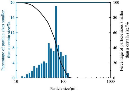 The test scenario is the marine-dredged mud yard of Rizhao Port in Shandong Province and the steel-making waste slag of the industrial park in the port area. The stacked marine-dredged mud and waste steel slag with a particle size of 0~4.75 mm are used as raw materials. The basic physical properties and chemical composition contents of marine-dredged mud are measured, shown in Table 1 and Table 2, and the particle distribution curve of marine-dredged mud is shown in Figure 1.