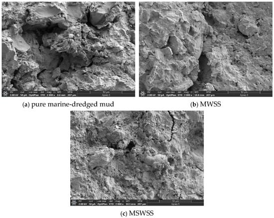 SEM analyses of pure mud, unsolidified MWSS and MSWSS at 2000×.