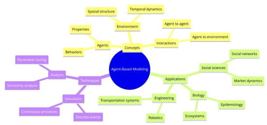 Conceptual mind map for agent-based modeling (ABM) based on [15,16,17,18].