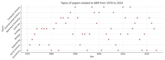 The early phase, spanning from 1970 to 1999, was characterized by ABM’s application to ecological and biological systems [22,23,24].