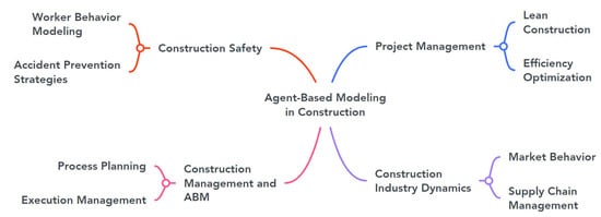 In this subsection, we will focus on the application of ABM within the construction industry as illustrated in the mind map below (Figure 10).