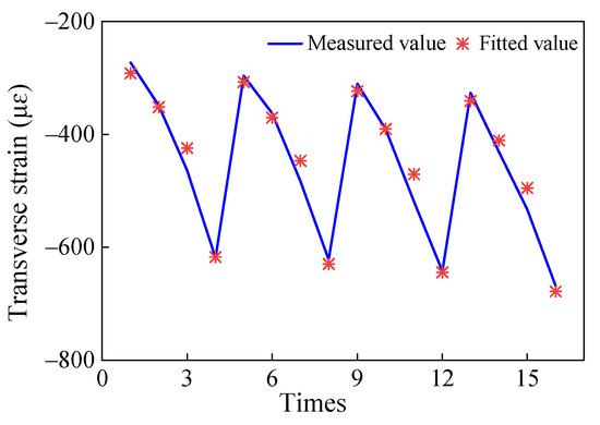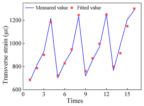 The model was employed to estimate the original sample, and the fitted values were compared with the measured values to evaluate the simulation effect of the model, as shown in Figure 15. The figure illustrates that the mathematical model exhibits a strong fitting accuracy.