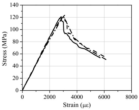 Stress–strain curves of UHP-ECC cylinder specimen under uniaxial compression.