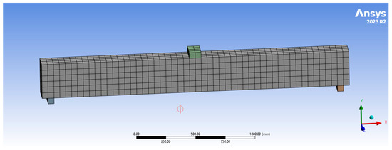 In general, any finite element (FE) modeling technique has to be verified using rigorous and reliable experimental studies to extend the experimental work results or make a parametric study. The simulation integration platform ANSYS Workbench 2023 R2 was used for the modeling of the UHP-ECC beams. An experimental UHP-ECC beam was modeled; the beam (RU3Φ8) was tested by Yu (2019) [5], and its results were used to verify the accuracy and reliability of the FE model. The modeling process included the following data: discretized geometry, element section properties, material data, interactions and constraints, loads and boundary conditions, analysis type, and output results.