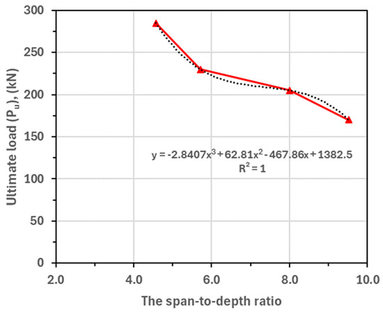 To examine the validity of the proposed equations, the ultimate flexure loads calculated according to this equation and that of the FEM are compared, taking the material reduction factors γc, γt, and γs as one. Table 7 gives the values of the analytical ultimate loads (Pu-anal), the FEM ultimate loads (Pu-ANS), and the ratio between them.