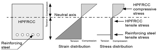 Schematic representations of strain, stress, and proposed idealized stress distributions of UHP-ECC.