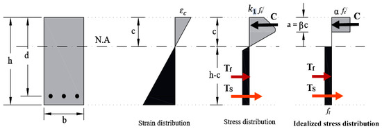 The values of both and control the values and the locations of the forces, either the compression or tension. As a result, the flexural capacity (ultimate moment) of the cross-section is also a function of and , which can be defined as follows [42]: