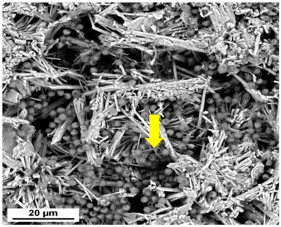 A scanning electron microscope Ultra Plus (Carl Zeiss, Oberkochen, Germany) was used for a higher magnification image. Other microscopical photos were obtained using a Phenom XL microscope (Thermo Fisher Scientific, Brno, Czech Republic), backscattered electrons detector, and high vacuum (1 Pa). Before microscopical observations, samples were dried (samples without molds at 40 °C for 24 h; samples with molds in vacuum for 24 h) and covered by a thin layer of metal using sputter coater SC7620 (Quorum). Chemical characterization of observed phases was performed by energy-dispersive X-ray analysis using a Phenom XL microscope (Thermo Fisher Scientific, Brno, Czech Republic) and an accelerating voltage of 15 kV.