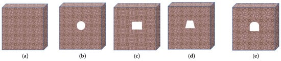 Prefabricated roadway cross-section morphology sandstone specimen. (a) Complete rock sample; (b) orbicular; (c) rectangular; (d) trapezoidal; (e) straight-wall domed form.