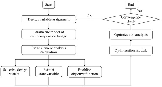 Kamil Korus et al. [29] used an open-source visual programming language (VPL) for civil engineering, Dynamo, to generate scripts and establish a finite element model of an arch bridge. They applied a genetic algorithm for the parameter optimization of the model, significantly reducing the time consumed compared to traditional design iterations, and the method is applicable to other structures. Majid Pouraminian et al. [30] first generated a finite element model of the arch bridge using MATLAB, then optimized the construction process using the gradient-based Simultaneous Perturbation Stochastic Approximation (SPSA) algorithm, with the total volume of the substructure as the objective function. The results showed that SPSA can be effectively applied to bridge shape optimization programs, and the shape optimization process can significantly reduce the structure’s weight. However, research on parameter optimization methods for the design of the new HCSS system is still limited.