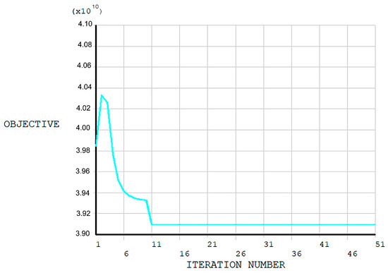 Table 7 shows that the objective function approaches a stable value. All three sets of design variable values converge to generally consistent optimized results. Hence, the structural optimization design using ANSYS is demonstrated to be feasible.