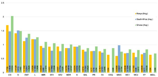 3.1. Space Syntax Results of Kenya, Ghana, and South Africa