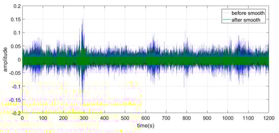 From Figure 8, it is evident that the collected vibration signal, after undergoing smoothing, has eliminated many irregular spikes. This has resulted in smoother test data, enhancing the accuracy of subsequent processing outcomes.