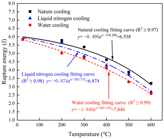 - The magnitudes of flight and rupture energy progressively decrease as the heating temperature rises, showing a nonlinear trend. The variation with the cooling approach follows a pattern of natural cooling > liquid nitrogen cooling > water cooling. The conversion efficiency of fracture energy also follows this pattern.