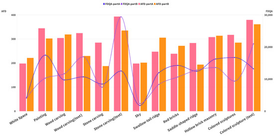 The results showed that Group A participants had the highest FDQA values for architectural elements, such as painting, color sculpture, and brick carving, which can be explained by their preference for elements with complex shapes and bright colors.