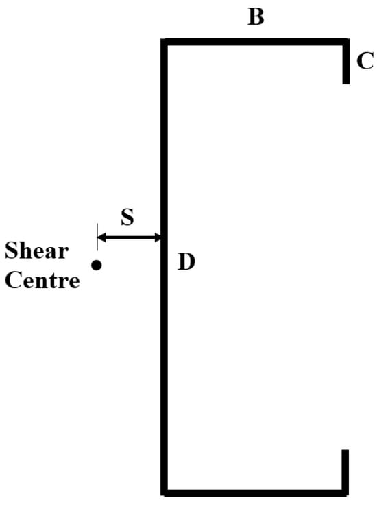 A general thin-walled channel section is shown in Figure 1. The channel has a web depth D, a flange width B and a lip length C. The distance of the shear centre from the web centreline is S.