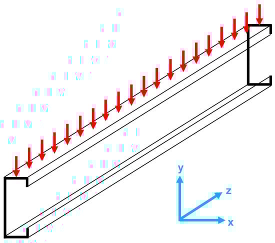 A simply supported channel-section beam of length L subjected to a uniformly distributed vertical load q acting on the top flange is shown in Figure 2. Because the load acts eccentrically from the shear centre, the beam is subjected to both bending and torsion. In order to calculate the longitudinal stresses due to torsion caused by this loading condition, it is necessary to obtain the solution to the classical differential equation of torsion [,]. The classical differential equation of torsion for the twist rotation ϕ about the longitudinal z axis is given by [,]