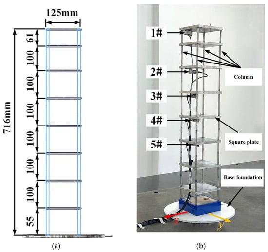 Multi-degree-of-freedom structure model. (a) Elevation of the model. (b) Physical model.
