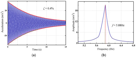 Free vibration tests. (a) Time history of free vibration. (b) Acceleration response spectrum of the free vibration.