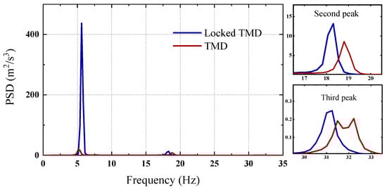 Acceleration response spectrum of the TMD.