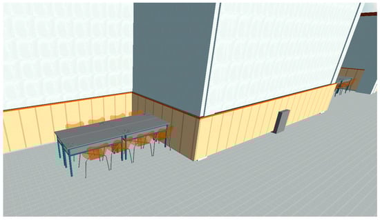 For the management of study areas located in corridors (Figure 22), since these are spaces in free circulation areas, their management within the Revizto model consisted of the 3D visualization of the corresponding furniture, the location of WiFi terminals, and the recording of incidents (such as a lack of WiFi connection, damage to furniture, etc.).