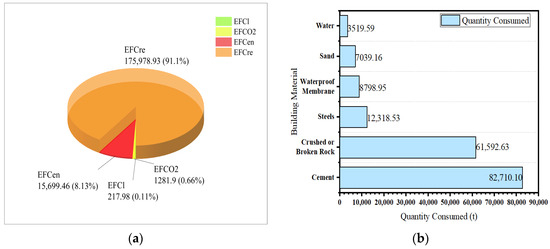 In comparison with these data, the results demonstrate that the Quzhou stadium maintains a sustainable level of ecological health, with an ecological footprint value of 1.3426 and a carrying capacity of 1.483, as calculated using Formula (9). To delve into the sustainable development of the stadium, a detailed analysis can be conducted from two key perspectives: (1) a life cycle analysis and (2) a regional spatial analysis.