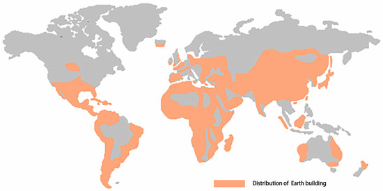 Over 8000 years ago, during the Neolithic era, earth was widely used as a primary building material, serving as a precursor to modern construction. Today, approximately 30% of the global population still utilizes earthen materials in buildings [1] (Figure 1), with over 100 million people in China residing in earthen houses [2] (Figure 2). The traditional earthen structures of Tuyugou Village, Turpan, are a key part of the region’s architectural heritage. While these buildings reflect the historical lifestyle of local inhabitants and offer cultural value, modernization has become necessary due to changes in the needs and safety concerns of residents. Moreover, the growing interest in cultural heritage tourism supports their continued development [3]. However, the modernization process presents challenges: it requires preserving cultural significance while adapting to modern living standards, introducing new architectural considerations [4,5].