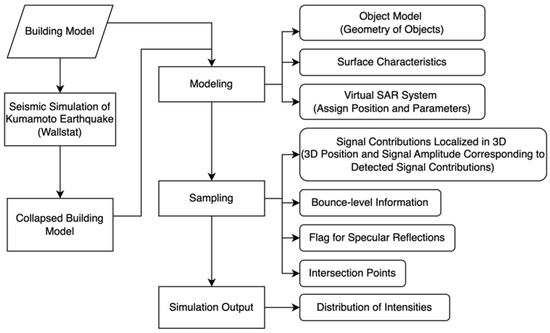 According to Franceschetti and Migliaccio (1995), SAR simulation systems can generally be divided into SAR image simulators, which directly provide focused images, and SAR raw signal simulators, which provide raw SAR data for processing [15,16,17]. This study focuses on SAR image simulators for applications in urban areas.