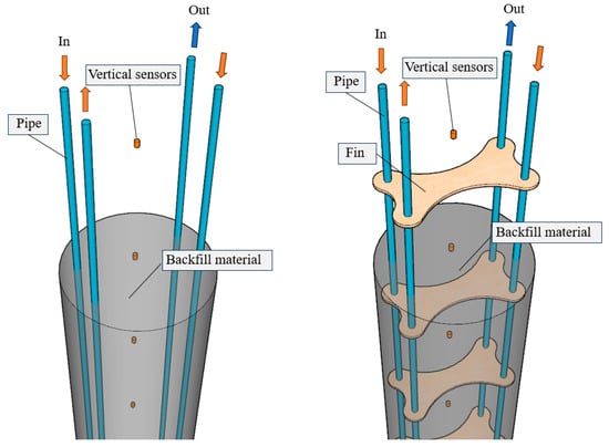 - Saeidi, R.; Noorollahi, Y.; Chang, S.; Yousefi, H. A comprehensive study of Fin-Assisted horizontal ground heat exchanger for enhancing the heat transfer performance. Energy Convers. Manag. X 2023, 18, 100359. [Google Scholar] [CrossRef]