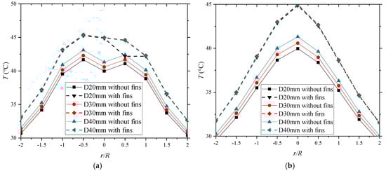 - Under the optimum operation of fins, the heat transfer temperature within the concrete and surrounding soil range rises noticeably, and as the tube diameter grows, the temperature increase reduces. When choosing a tube diameter between 20 and 40 mm, the temperature of the concrete area rises by 10.8% to 12.3%, and the temperature of the region surrounding the pile rises by 5.3% to 8.7% after the fins have been running for 336 h.