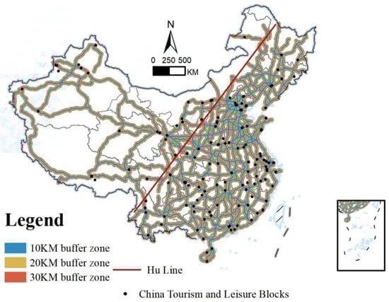 | Vector data | Vector point location data for tourism and leisure districts | Analyze the spatial distribution characteristics of tourism and leisure districts in China | Ministry of Culture and Tourism of the People’s Republic of China [28] |