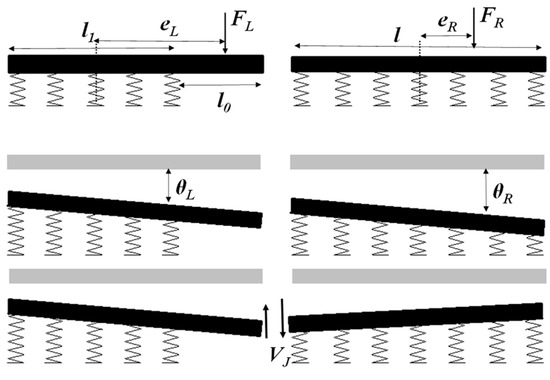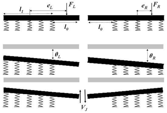 According to the moment balance equation, the respective joint angle (, ), and the respective vertical displacement (, ) of the joint without taking into account the interactions can be obtained as follows: