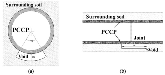 Effect of a soil void on the stress of the concrete at spigot end: (a) outside and (b) inside.