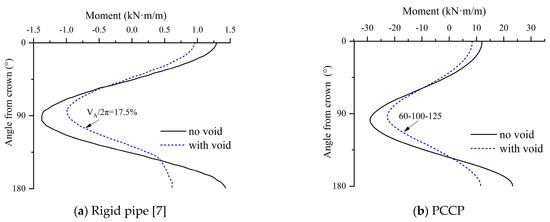 Effect of void at pipe invert on the moment: (a) rigid pipe and (b) PCCP.