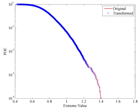 POE curve of the original and transformed extreme value.