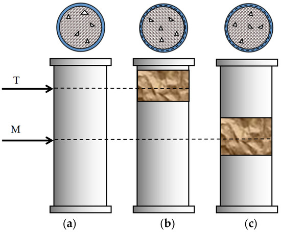 Schematic diagram of corroded CFST. (a) CS-N. (b) CS-T. (c) CS-M.