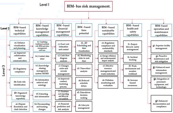 | A | BIM-based technical capabilities | a1 | Enhance visualization and planning | BIM’s 3D visualization of building projects helps discover design and logistical concerns early on. This visualization prevents expensive mid-construction adjustments and delays. | [3,4,54] |