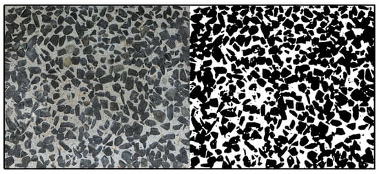 2.3.1. Digital Image Analysis—The Surface Area Occupied by Coarse Aggregate on Samples with Exposed Aggregate