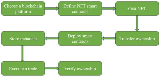 NFTs serve as a means to tokenize unique digital assets, including artwork, collectibles, videos, images, and other multimedia content. As a special type of token in blockchain technology, NFTs ensure the uniqueness of digital objects and verify their ownership. This is achieved through the immutability of the blockchain, providing a reliable authentication mechanism for digital assets [39]. In a trustless trading environment, NFTs offer proof of ownership and authenticity, allowing transactions to be completed without intermediaries [40]. The unique properties of NFTs not only enhance the liquidity of digital assets but also create new opportunities for their broad application in the digital economy. By providing a unique and verifiable identity for digital goods, NFTs open up new avenues for usage, surpassing traditional boundaries and fostering innovation across various fields.