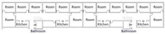 According to Marx and Engels, the feminist movement aims to dismantle patriarchy and abolish private property [76]. In this context, one of the goals of feminist architecture can be understood as the elimination or weakening of the household as an economic unit [77]. The development of feminist architecture can be seen as a series of steps toward achieving this objective, which can be divided into three main stages: In the initial stage, the socialization of housework, led by material feminism, focuses on liberating family space; In the development stage, radical feminism emphasizes community and urban planning by creating women’s apartments (Figure 8), communities, and feminist cities; In a further development, postmodern feminism guides the system construction of a feminist architecture.