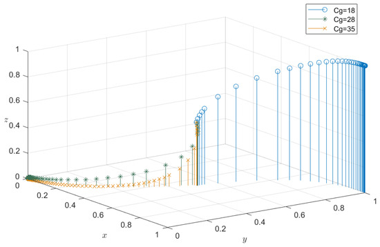 For the cost of government regulation, the values set are 18, 28, and 35, respectively. The evolution results of the system dynamics equation are shown in Figure 6. When , the government, construction enterprises, and building material production enterprises all smoothly evolve to the “1” point, which indicates that when the government takes some measures to intervene in the C&DW recycling market, enterprises will be promoted to participate in recycling. When the cost of government regulation () increases to 28 and 35, the development speed of the government’s stabilization strategy gradually slows down until it evolves to “0”. At the same time, the development of enterprises also gradually tends not to implement the strategy. At this point, construction enterprises and building materials production enterprises tend not to implement the C&DW recycling strategy. This indicates that excessive cost of government regulation may reduce government supervision and hinder the willingness of construction enterprises and building materials production enterprises to implement recycling strategies.