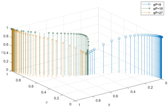 Government regulators reduce carbon dioxide production by implementing carbon trading policies. This section demonstrates the impact of carbon trading policy on construction enterprises and building materials production enterprises. The carbon trading price is, respectively, set as 0.3; 0.6; 0.9, and the evolution result is shown in Figure 9. It can be observed that when = 9, construction enterprises and building materials enterprises do not participate in the trend of C&DW recycling. However, when = 18 and = 27, with the increase of carbon trading price, the benefits of construction enterprises and building materials enterprises participating in C&DW recycling are increased compared with illegal waste disposal. Therefore, enterprises will actively cooperate with the government to participate in recycling. This indicates that with the increase in carbon trading price, construction enterprises and building materials production enterprises are more active in the recycling and utilization of C&DW.