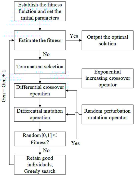 - Step 2. Set initial parameters to generate the initial population f, which includes Gen = 0, population size (Np), maximum number of iterations (Nmax), scaling coefficient (F), and crossover coefficient (CR).