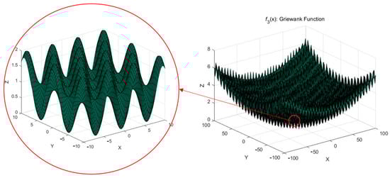 | Griewank | Multimodal | 0 | −600 ≤ ≤ 600 |