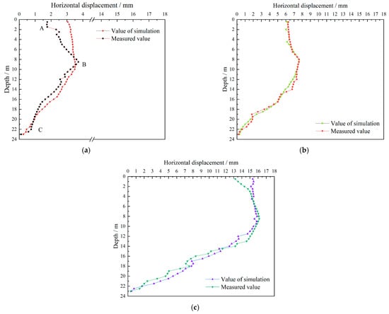 - The soil parameters are identified by GADE, and a finite-element model of the Shimao Binjiang deep foundation pit is constructed for analysis. The correlation between the calculated curve and the measured curve reaches 95.05%, which proves the feasibility of GADE in identifying the parameters of the soil constitutive model.