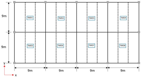 The layout plan for the Tuned Mass Dampers (TMDs) is presented in Figure 10, and the specific parameters of the TMDs are provided in Table 13.