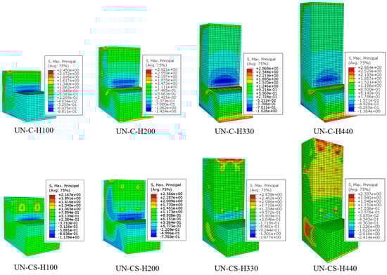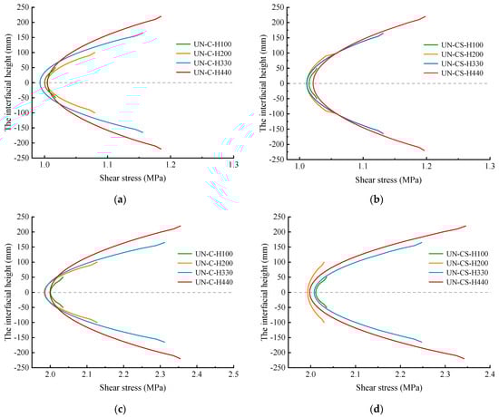 5.2. Stress Field on the UHPC-NC Interface with Varying Heights